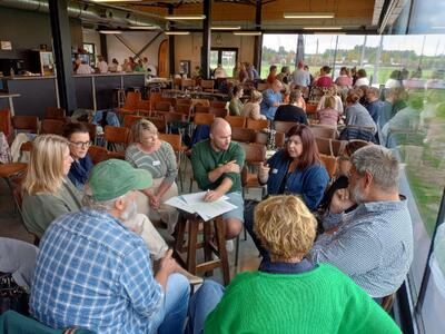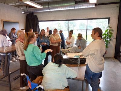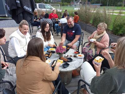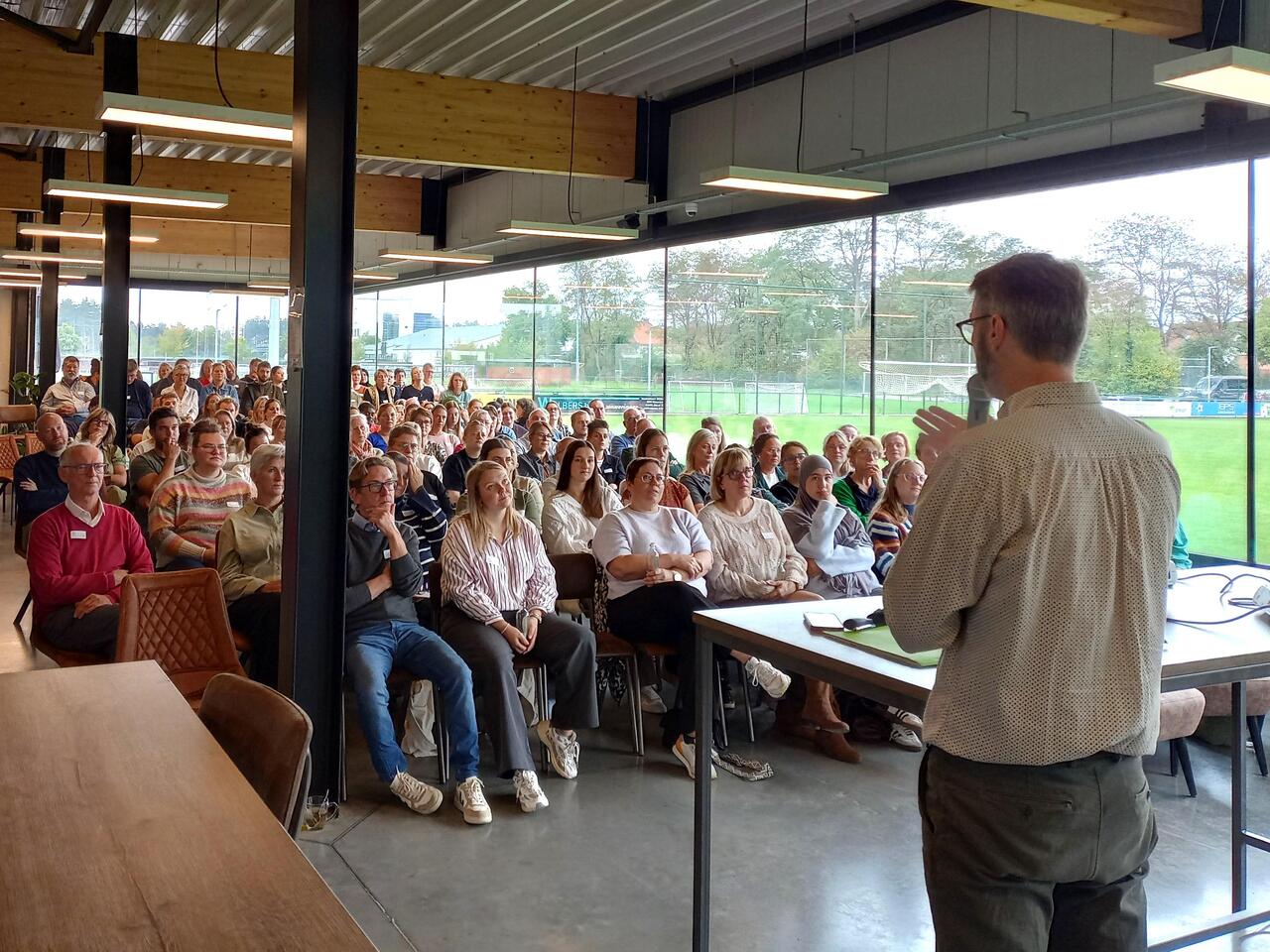 De personeelsdag van Mekanders staat dit jaar in het teken van het nieuwe vijfjarenbeleidsplan (2026-2030). De directie licht de grote lijnen toe rond zorg op maat, personeelsbeleid, infrastructuur, interne werking en financiën. Tussendoor gaan de medewerkers in groepjes aan de slag om hun visie en bedenkingen te delen. Tijdens de middagpauze geniet iedereen van een lekker frietje met vleesje. Het is een aangename dag vol verbinding en uitwisseling.