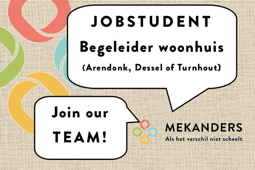 Ben jij een creatief organisatietalent met een grote zelfstandigheid die ook goed kan samenwerken met anderen? Wil jij meebouwen aan de goede sfeer in één van onze woonhuizen in Dessel, Arendonk of Turnhout? Leg je vlot contacten met families, vrijwilligers, buren,… en heb je kennis van emotionele ontwikkeling en autisme? Dan ben jij waarschijnlijk de geknipte kandidaat voor een leuke en interessante vakantiejob in één van onze woonhuizen.