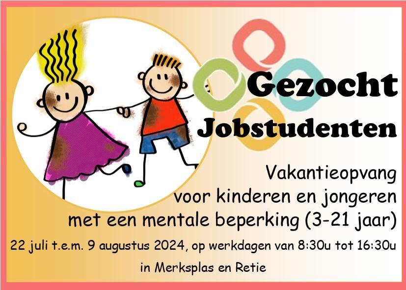 Ben je student in een sociaal-pedagogische richting en ben je vrij van 22 juli tot en met 9 augustus? Stel je kandidaat als jobstudent voor onze vakantieopvang en bezorg kinderen met een beperking de tijd van hun leven.