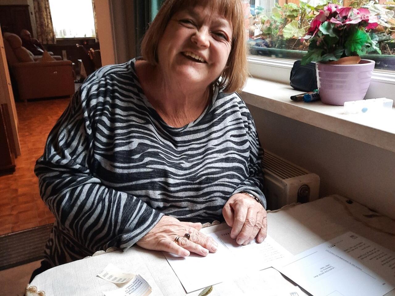 Martina is een bezige bij. Ze werkte voor corona op verschillende plaatsen binnen Mekanders: ons sociaal restaurant AC, ’t Huizeken en De Frisse. Buiten Mekanders was ze ook actief in WZC De Wending. Door de corona-maatregelen moest Martina noodgedwongen een keuze maken waar ze zou blijven werken. Op verschillende plekken werken is voorlopig helaas niet mogelijk. Ze werkt nu enkel in De Frisse. Zo blijven er natuurlijk veel vrije momenten over in de week. Gelukkig is er thuiswerk! Martina vindt dat heel leuk! Ze wil dit zelfs na coronatijd verder blijven doen.