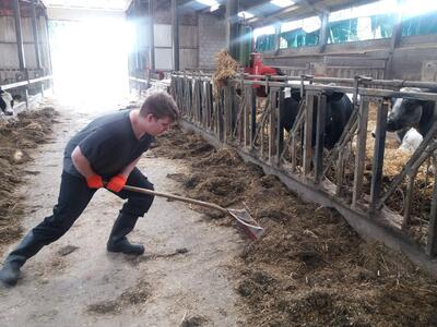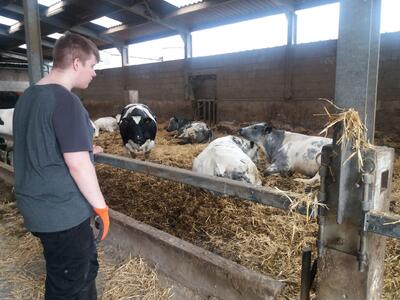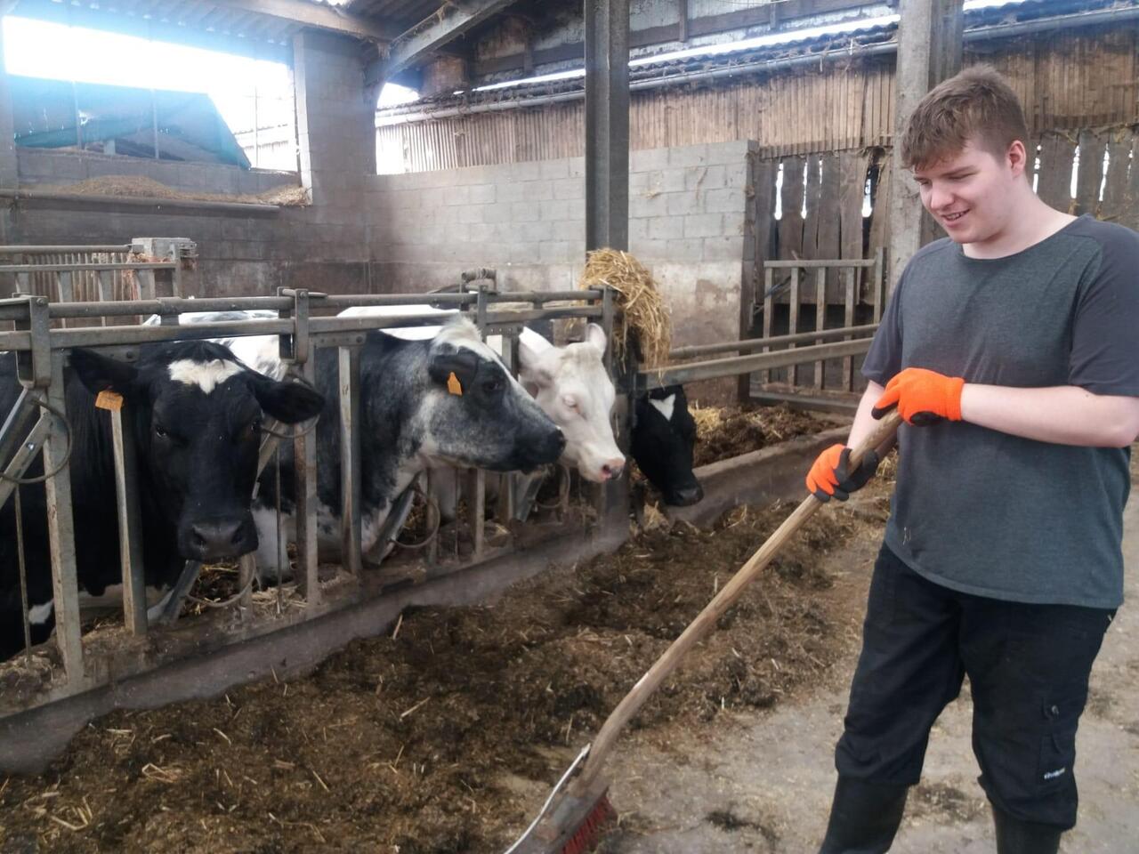 Kobe verzorgt met veel liefde de koeien en hun kalfjes op de Zorgboerderij Bax-Peeters van boer Cyriel en boerin Rita in Arendonk. Een kippenren installeren, de dieren eten geven, een stal uitmesten, ... Voor boer Kobe is geen klus te zwaar.