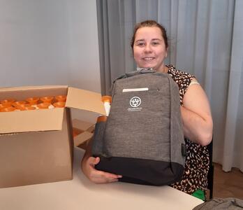 In het kantoor van Weelde mochten de bewoners van De Boomgaard de rugzakken vullen. Ze gingen er in groep naartoe. Voor de bewoners een welkome afwisseling van werkomgeving. In HoogMark werden de rugzakken voor de huishoudhulpen van regio Hoogstraten gevuld in het woonhuis zelf. Meteen een fijne weekendactiviteit voor onze bewoners.