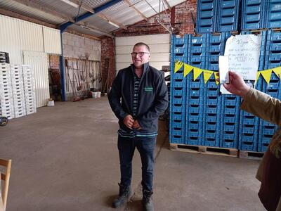 In 2012 introduceerde Tom De Ridder 'zijn' cliënt Peter bij de Bioboerderij van Jacques en Martine. Nu, tien jaar later, geeft Peter nog steeds het beste van zichzelf op deze warme werkplek, nu onder de hoede van jobcoach Ann.