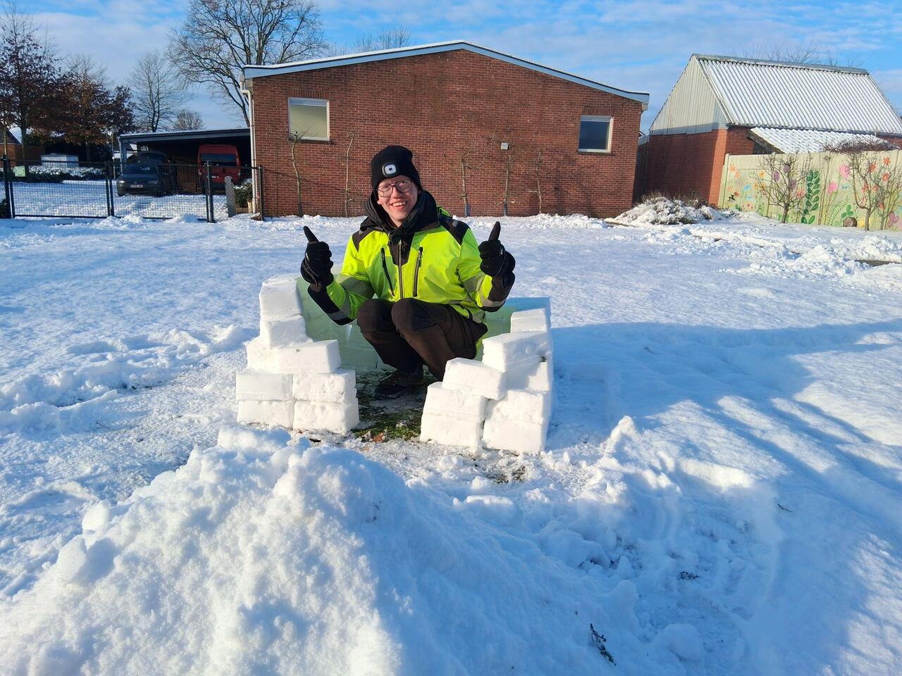 Dat Christian goed kan bouwen bewijst hij elke dag met zijn Lego. In dit winterse weer treedt hij uit zijn comfortzone en bouwt hij niet met Legoblokjes, maar met sneeuwblokjes. Hij maakt een echte iglo!