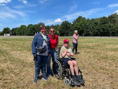 Caroline begeleidde mee de paarden. Floor, Ronny, Jan en Caroline hielpen de paardrijders op- en afstappen. Winni en Luc supporterden langs de zijlijn. Maar het moeilijkste werk deden onze ruiters helemaal zelf!