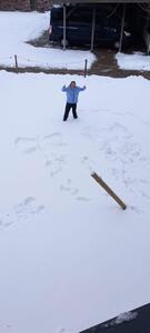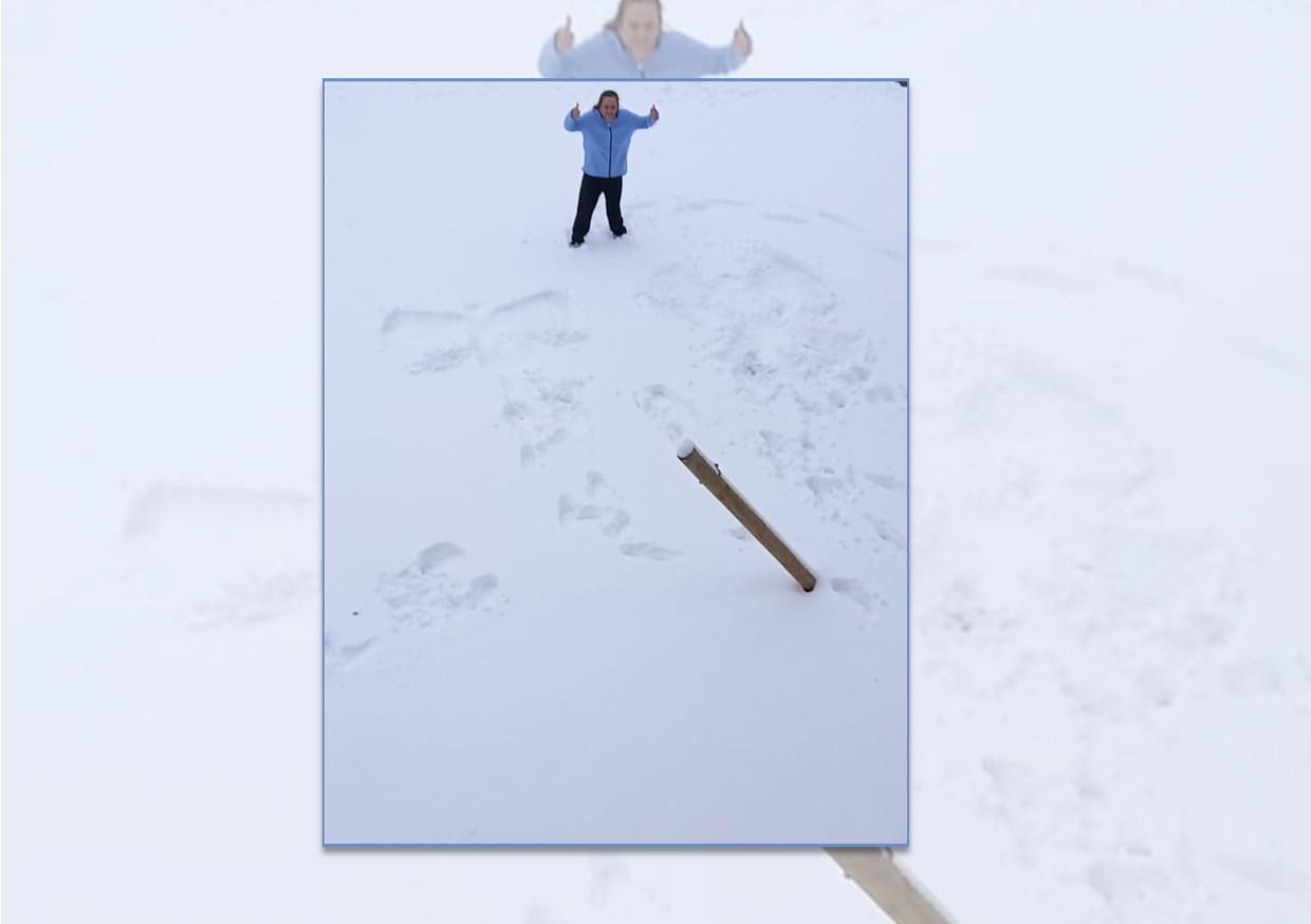 De Rusthuif leeft zich uit in de verse sneeuw. Sabine en Sarah trotseren de kou om 2 sneeuwengelen te maken.