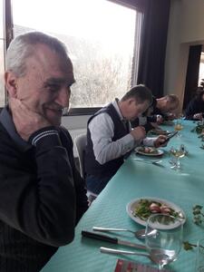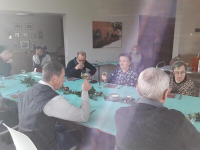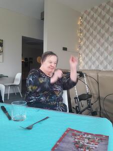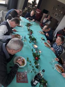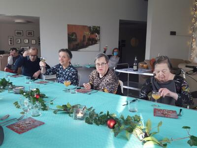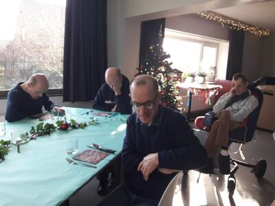 De bewoners van De Villa organiseerden deze week al van hun kerstfeestje, in 'mini' versie dit jaar. Andere jaren schuiven ook de vaste vrijwilligers en al het personeel mee aan aan de feesttafel. Dit jaar waren enkel de bewoners en het aanwezige personeel van dienst uitgenodigd.