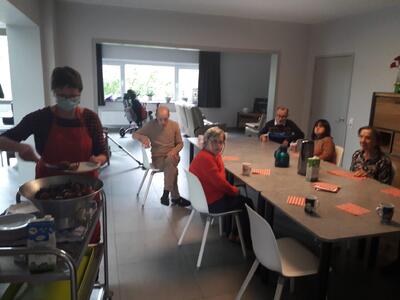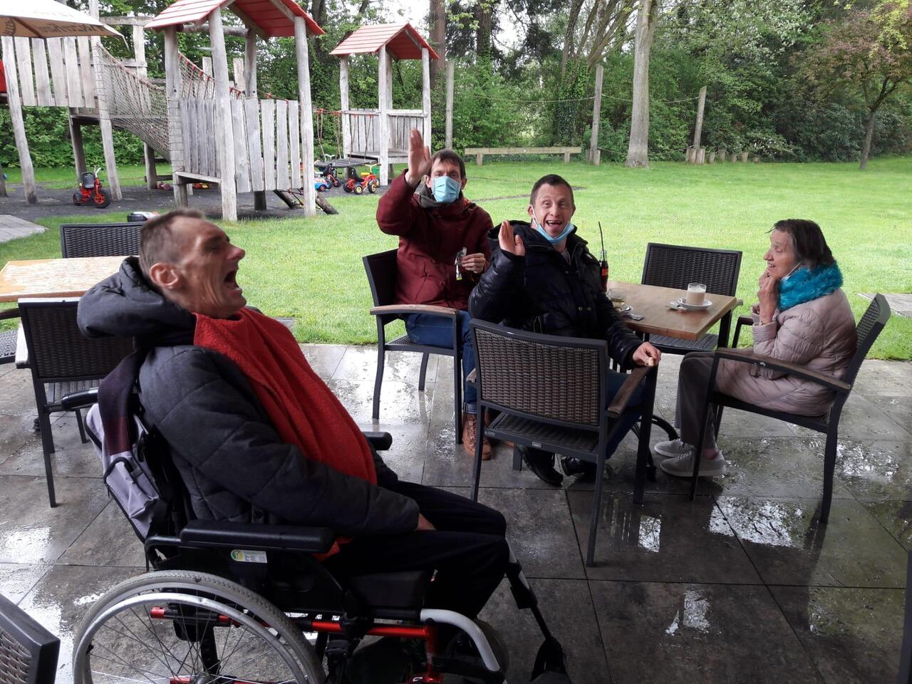 Op het programma stond een dagje ‘Planckendael’ voor de bewoners van De Villa. Maar het weer stak daar een stokje voor. Niet getreurd! Ook dichter bij huis zijn leuke dieren te spotten. In Retie staan ezels, struisvogels, een pauw, een varken, een paard en kippen die maar wat blij zijn met wat extra aandacht. De bewoners van De Villa genieten van deze mini-dierentrip. Een terrasje bij Het Meulenzicht zorgt voor een aangename opwarmer. Een terras helemaal voor hen alleen!