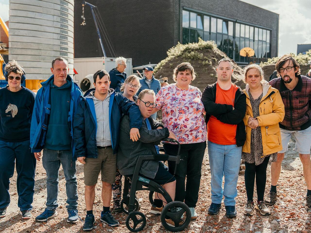Bewoners, begeleiders, directie en bestuur van Mekanders geven samen met de burgemeester van Retie, de architect, de bouwonderneming en een aantal sympathisanten het officiële startschot van hun gloednieuwe woonhuis Goriën in Schoonbroek (Retie).
