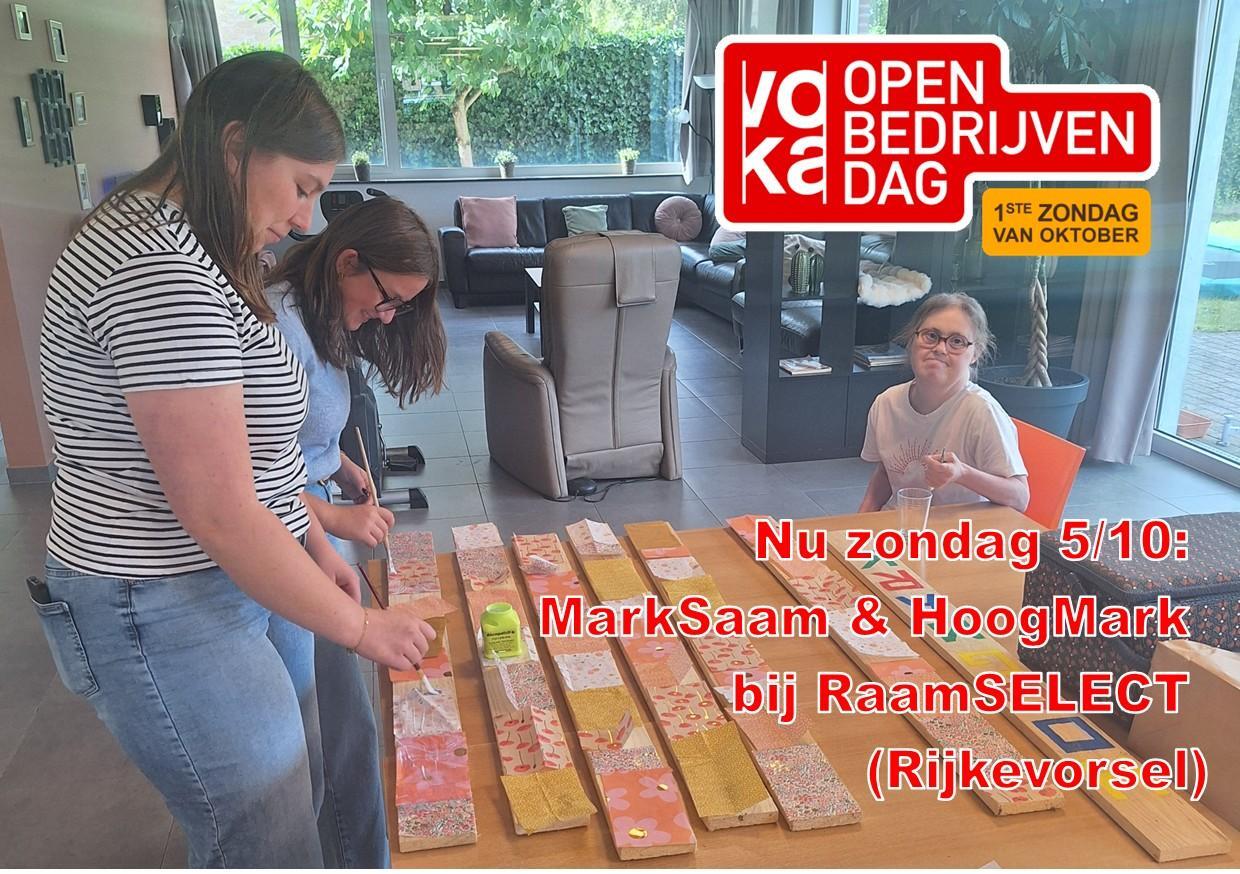 Op de Open Bedrijvendag van RaamSELECT in Rijkevorsel zetten HoogMark en MarkSaam met trots hun schouders onder de cafetaria. Bewoners, cliënten, begeleiders en leden van de Lokale AdviesRaad staan klaar om bezoekers met een glimlach te ontvangen en een hapje en drankje te serveren.