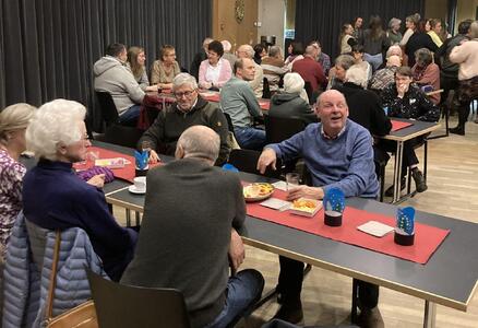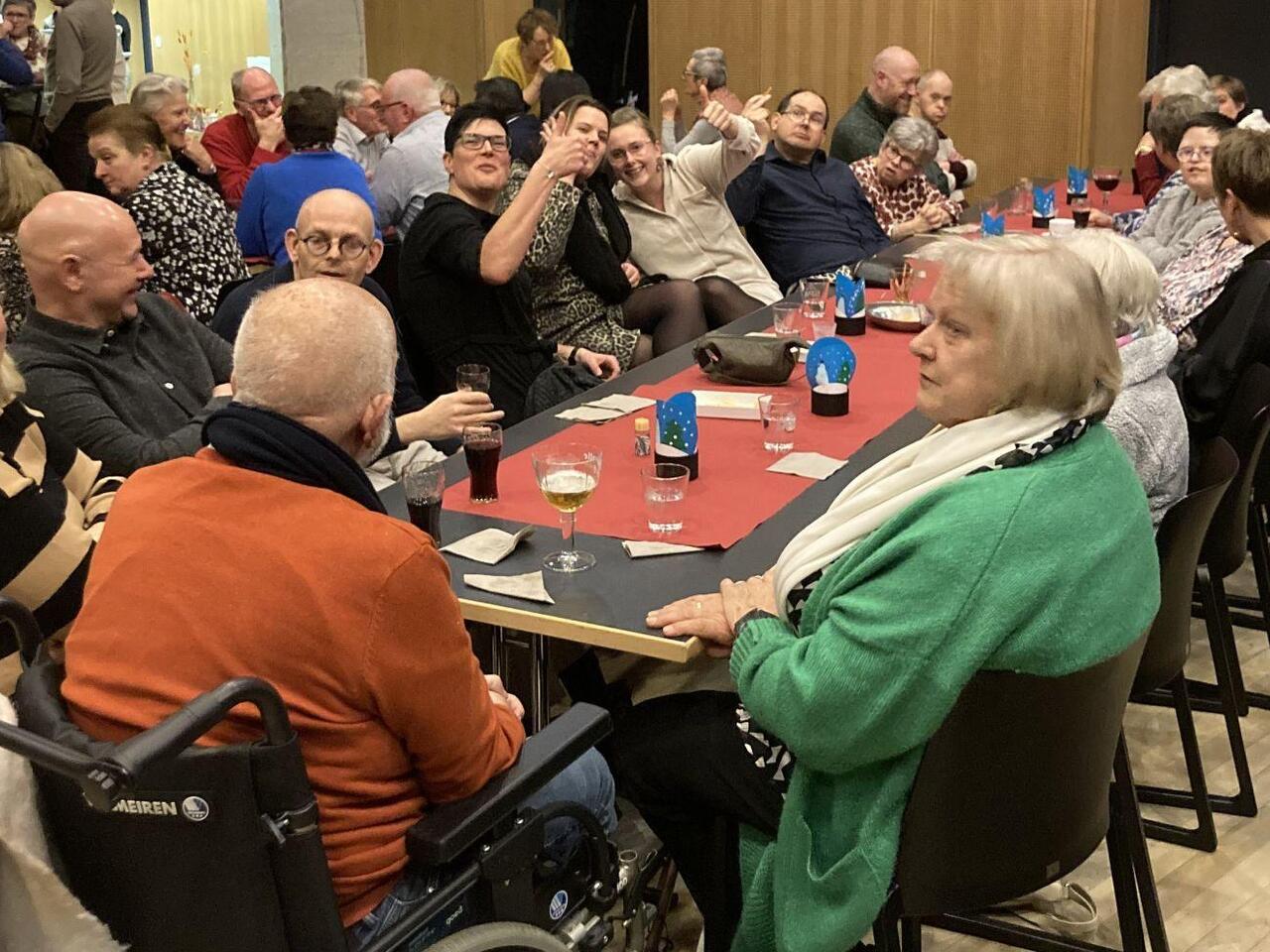 De zaal in Merksplas is goed gevuld voor de nieuwjaarsreceptie, georganiseerd door Hoogmark en Marksaam. De tafels zijn supermooi gedecoreerd dankzij vrijwilligster Anke. Er hangt meteen een heel gezellige sfeer.