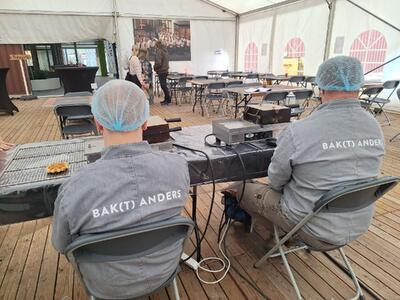 De ploeg van MarkSaam heeft de eer om tijdens de OpenBedrijvenDag de cafetaria van RaamSelect te bedienen. Cliënten van atelier Bak(t)Anders bakken ook verse wafeltjes en koekjes. Extra gezelligheid in de tent!