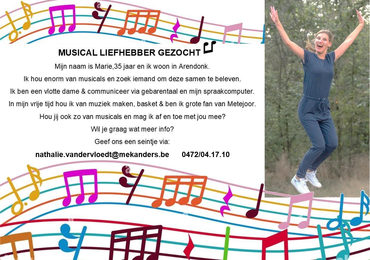 Ik hou enorm van musicals en zoek iemand om deze samen te beleven.