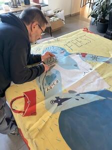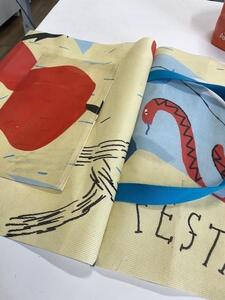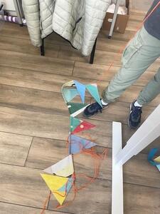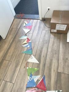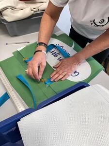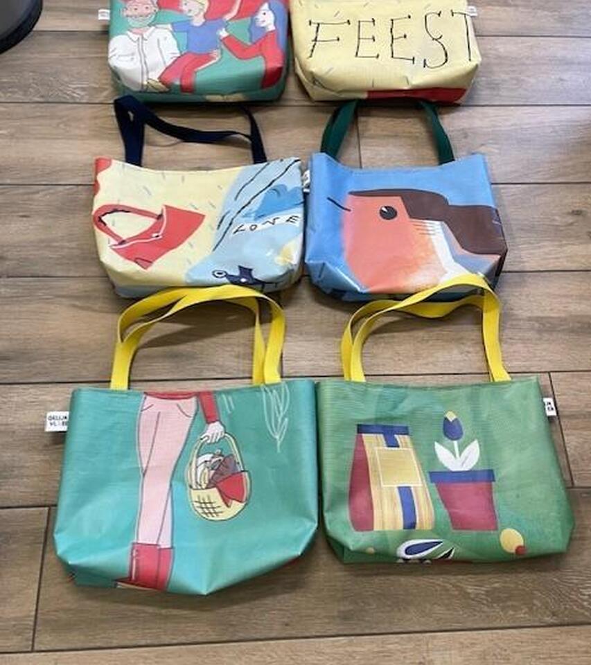 De arbeidsmatige dagbesteding van Gelijkvloer kreeg onlangs een mooie bestelling van de Groendomeinen van Provincie Antwerpen: 20 draagtassen en 80 meter vlaggenlijn! Daar zijn de cliënten van Gelijkvloer wel even zoet mee geweest. Vol overgave hebben ze een mooie collectie tassen en vlaggen bij mekaar gestikt. Ze zijn terecht heel fier op hun werk! Goed gedaan!