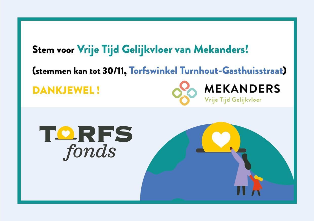 Ga langs bij Torfswinkel Turnhout Gasthuisstraat en breng je stem uit voor Mekanders Vrije Tijd Gelijkvloer.