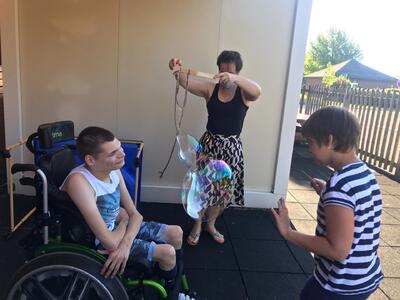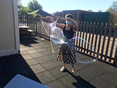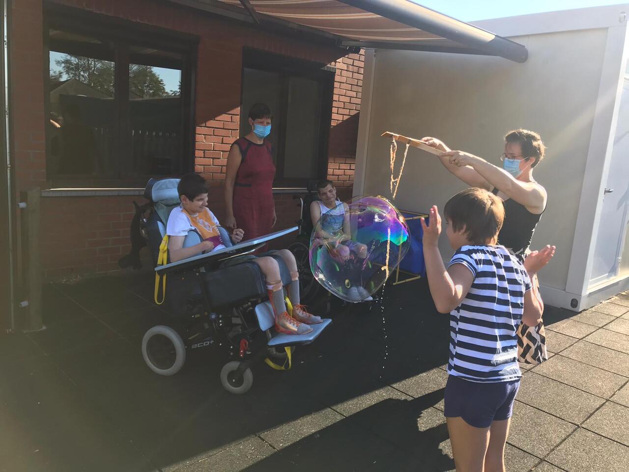 Als de begeleiding bellen blaast worden de kinderen altijd heel vrolijk. Door corona kan bellen blazen een tijdje niet. Maar Veerle heeft er iets op gevonden! Ze maakt heel grote bellen met behulp van de wind! Super mooi om naar te kijken! En heel leuk om ze stuk te maken!
